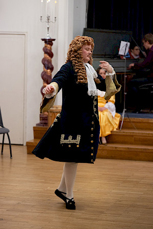 Tanssien alkupuoliskolla opetellaan ja tanssitaan englantilaista kontratanssia Henry Purcellin mukaansatempaavien kappaleiden tahdissa. Seuraavaksi tutustutaan ranskalaiseen menuettiin Georg Philipp Tellemannin ja Johann Caspar Ferdinand Fischerin musiikin tahdissa. Ennakkotaitoja ei tarvita!